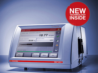 DMA 4500 M C 采用 Pulsed Excitation Method 专利技术,是市场上最可靠、最精确且最坚固耐用的化学品密度浓度计。凭借专用和紧凑的特性组合,DMA 4500 M C 能以最安全、最简便的方式测量浓度。无损测试只需 2 毫升的样品量且无需耗材,就能立即获取到 140 多种化学品从 0 %w/w 到 100 %w/w 的浓度读数。凭借新的环境监控和 FillingCheck™ 功能,DMA 4500 M C 在智能性和易用性方面也有了新的突破,仪器本身及样品的环境都能得到实时监控。