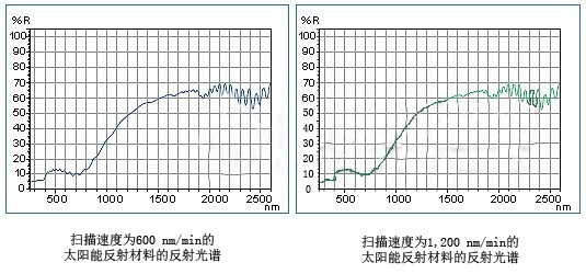 在秉承U-4100型光学系统高性能的同时,UH4150提供更高通量的测定。之前型号的仪器在1 nm数据间隔下测定时,扫描速度必须是600 mm/min。UH4150型可在1,200 nm/min的扫描速度下以1 nm的间隔进行测定,显著缩短测定时间。*5 UH4150在约2分钟内可从240 nm测定到2,600 nm。对需要在紫外-可见-近红外波长范围内测定的样品,如太阳能反射材料,尤其有效。