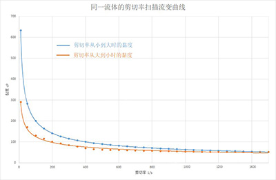 实际测量中,测量的物料大部分是非牛顿流体,其中又以剪切变稀的居多,大部分又具有和时间相关的触变性,见下图: