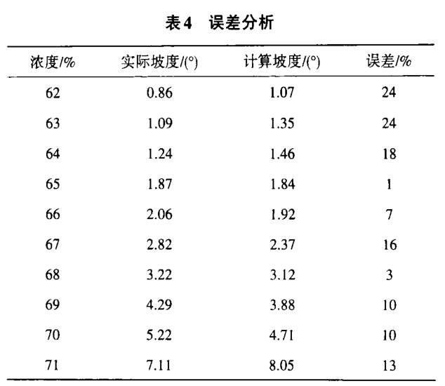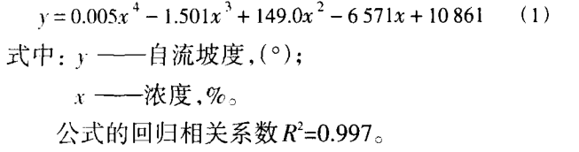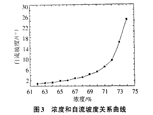 每组浓度进行3次实验 , 自流坡度取三者的平均值 ,实验结果如表1所示 。