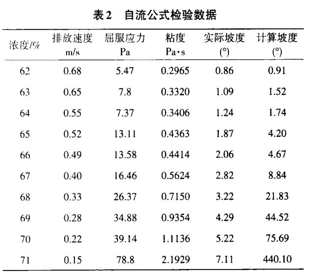 将流变参数和自流实验数据代人式(3)中 ,检验其适用性 ,结果如表2所示。