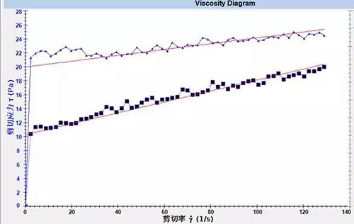 3、测试电池浆料高剪切速率下粘度,评价其涂布性能及混合生产时的性能;