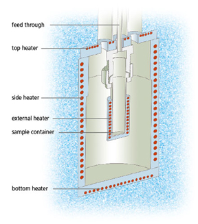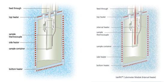 在管状或球形容器中放置若干毫升的样品。容器由完整的框架加热系统所围绕。在大多数测量模式下,框架加热系统的温度控制在与样品温度相同。此时在外围加热器与样品之间没有温差,样品释放的所有热量将停留在样品内部(即模拟绝热环境)。