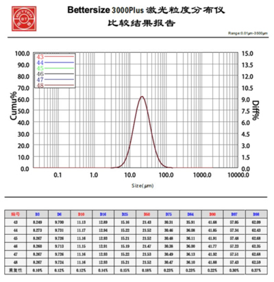 ≤0.5%(国家或国际标样 D50 偏差) |