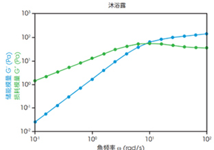 改变振荡频率可表征不同时间尺度下的黏弹性。液体肥皂在静止时表现出类似流体的行为(G">G',但在极短的时间尺度内,弹性行为占主导地位(G'>G”)。这会影响消费者的体验,只能使用振荡流变学对此进行量化。
